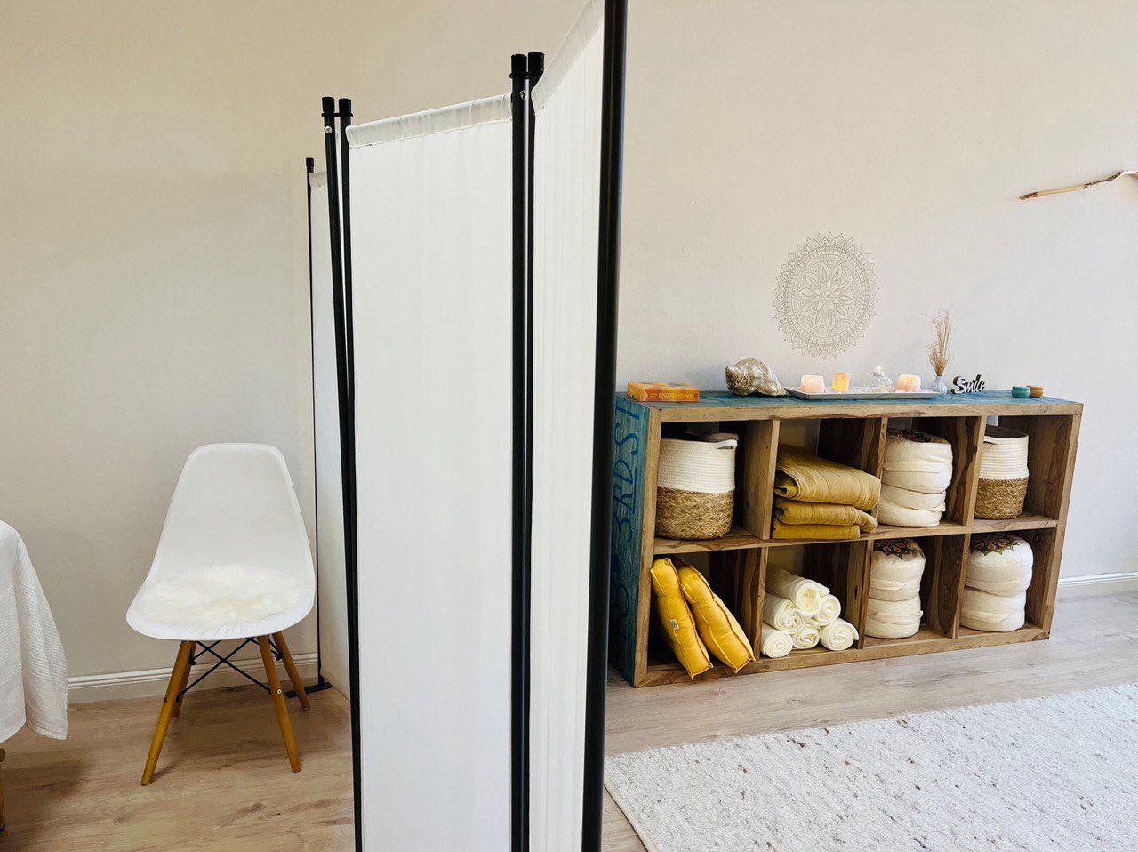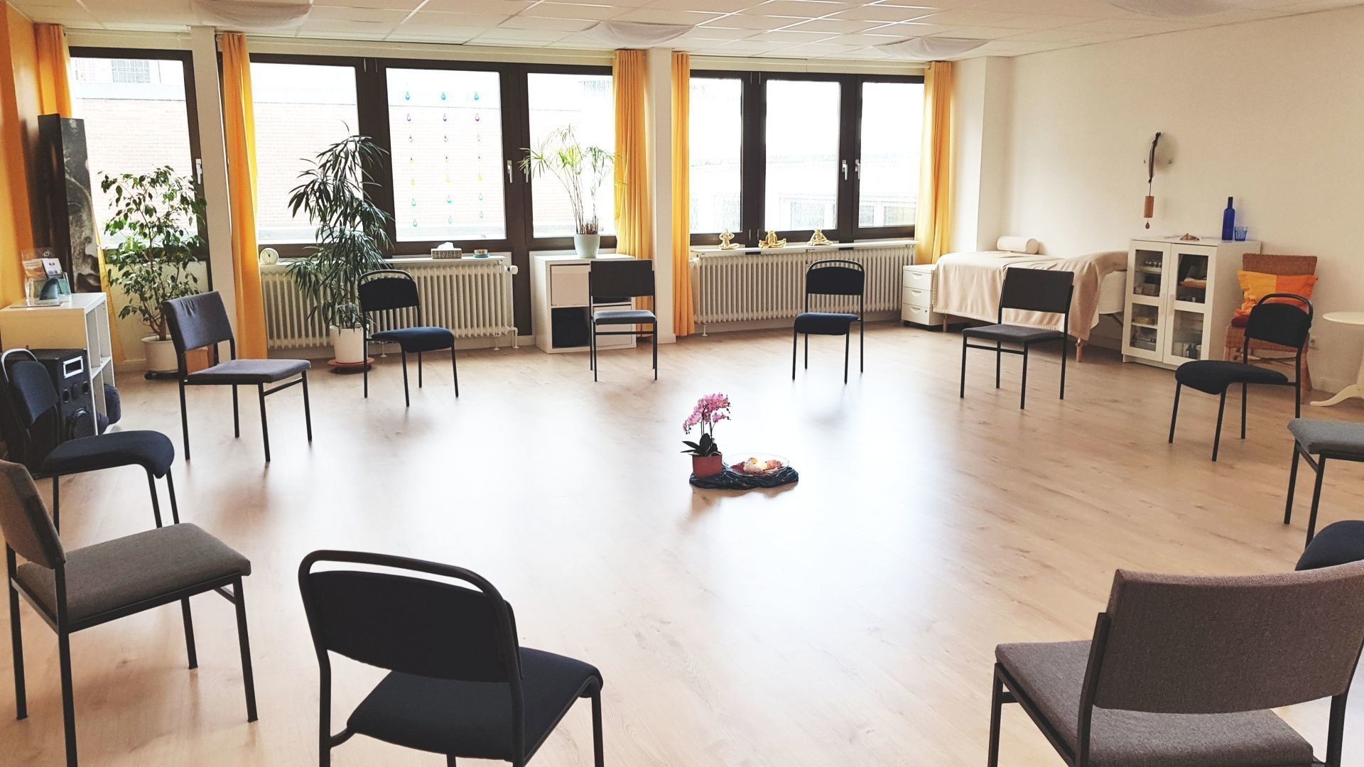 Der Raum verfügt über einen neuen hochwertigen Laminat-Fußboden, Musikanlage, Flipchart und Stühle für etwa 15 Personen. Eine Behandlungsliege kann bei Bedarf genutzt werden.